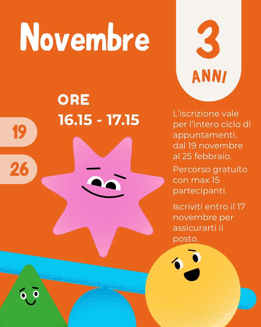 - dalle 16.15 alle 17.15 per i bambini di 3 anni