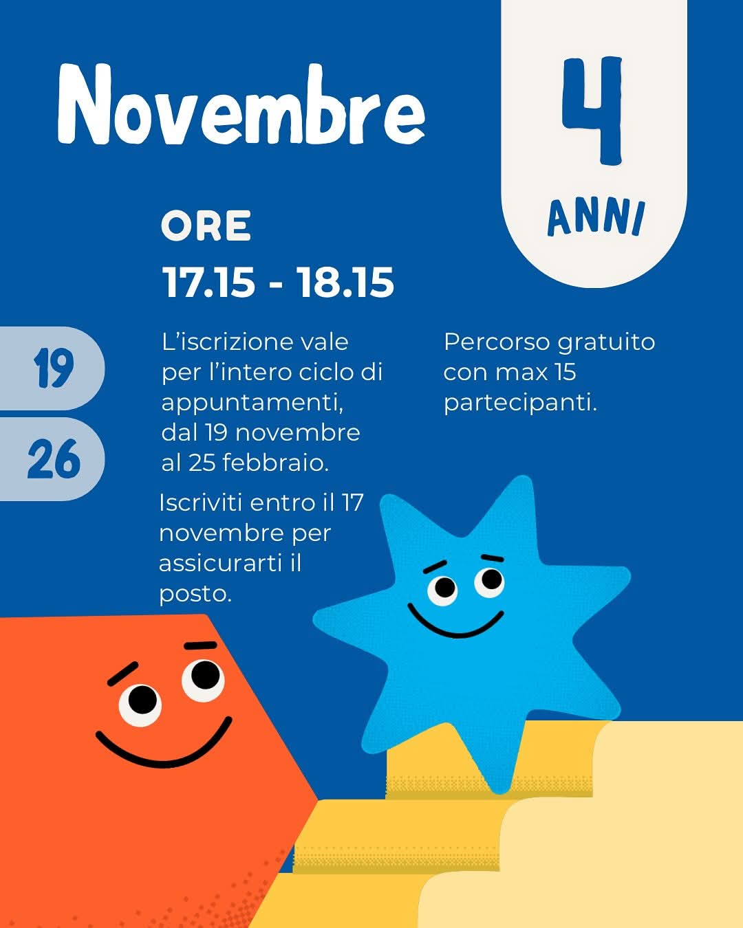 - dalle 17.15 alle 18.15 per i bambini di 4 anni.