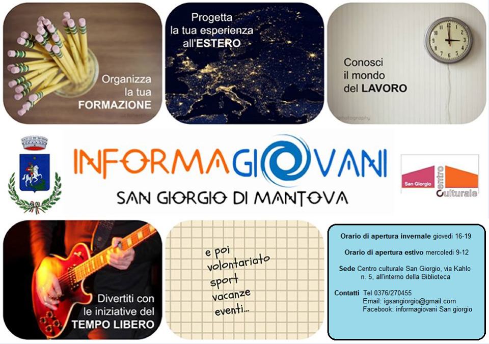 Consulta la pagina facebook: https://www.facebook.com/informagiovani.sangiorgio/?fref=ts e questa edizione della newsletter: http://www.informagiovani.mn.it/p/133/san-giorgio-di-mantova-newsletter.html